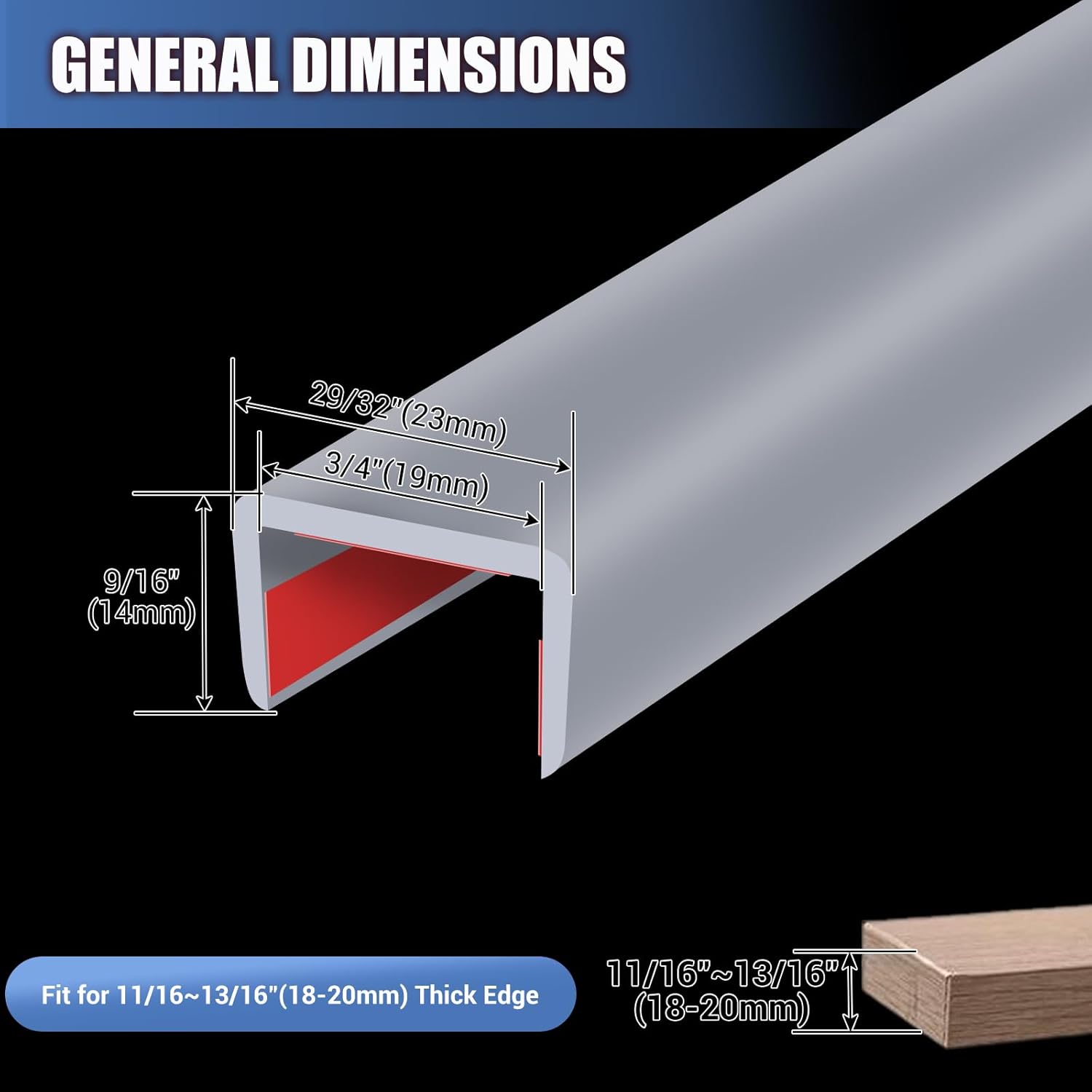 Rubber Edge Trim, Flexible Edge Banding, 3/4"(19mm) U Channel Furniture Edge Protector, Self Adhesive Edge Guards for Plywood, Wood, Glass Parts, 20Ft, Grey Color