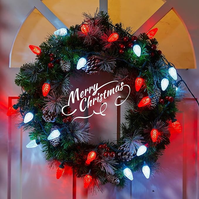 - Waterproof Shatterproof Red and Pure White Christmas Lights: Designed with impact-resistant, shatterproof C9 LED bulbs that withstand drops; Christmas outdoor lights are IP44 waterproof, and can withstand extreme temperatures, rain, wind, and damp climates, ensuring durability and safety, suitable for both indoor and outdoor use