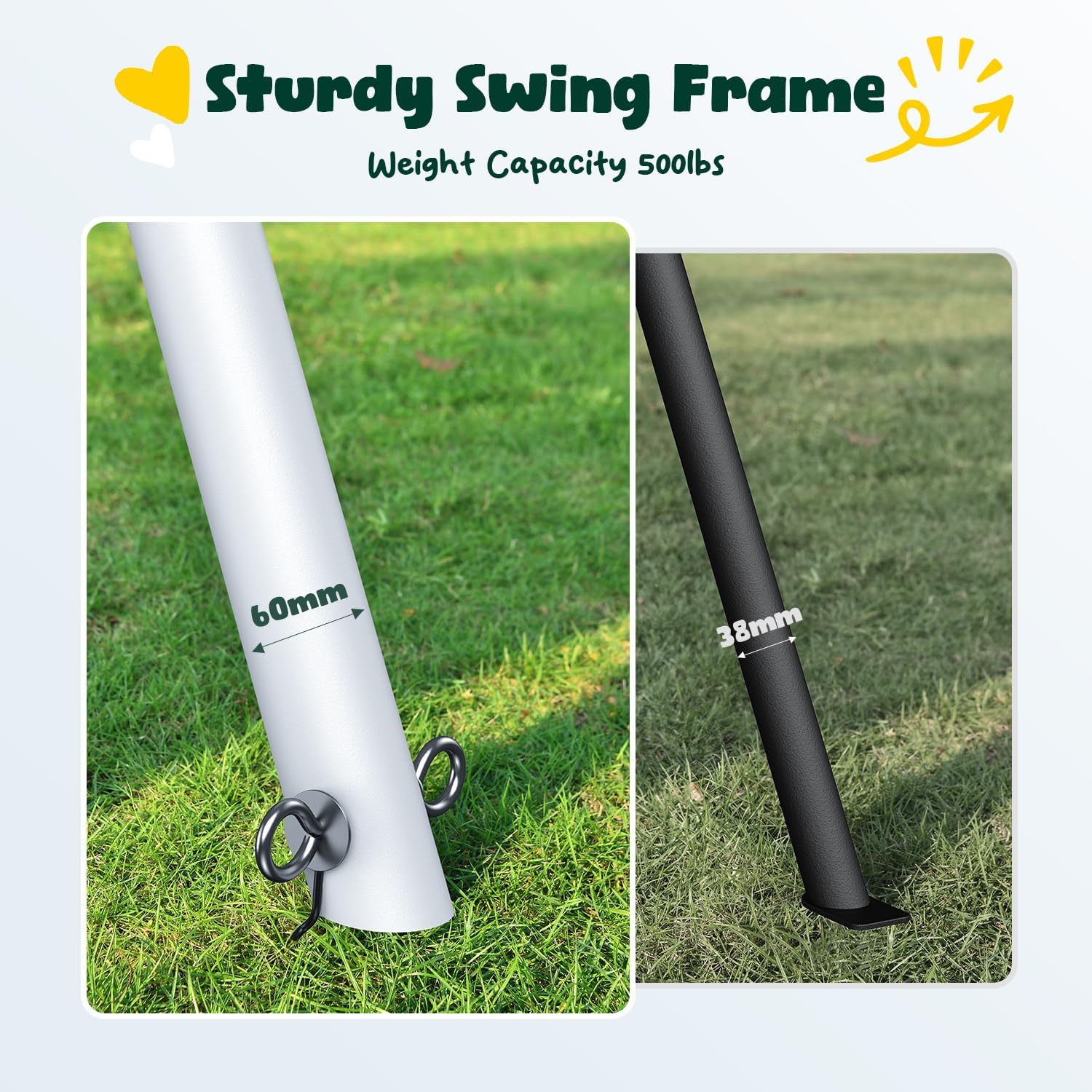 - 【7.5'-High Swing Frame】The 7.5'-High swing stand allows kids to swing higher and faster, offering an exciting experience. Whether you're looking for swing sets for backyard for kids 3-8 or big kids 8-12, this durable frame is designed to provide endless fun for toddlers, older kids, and even adults