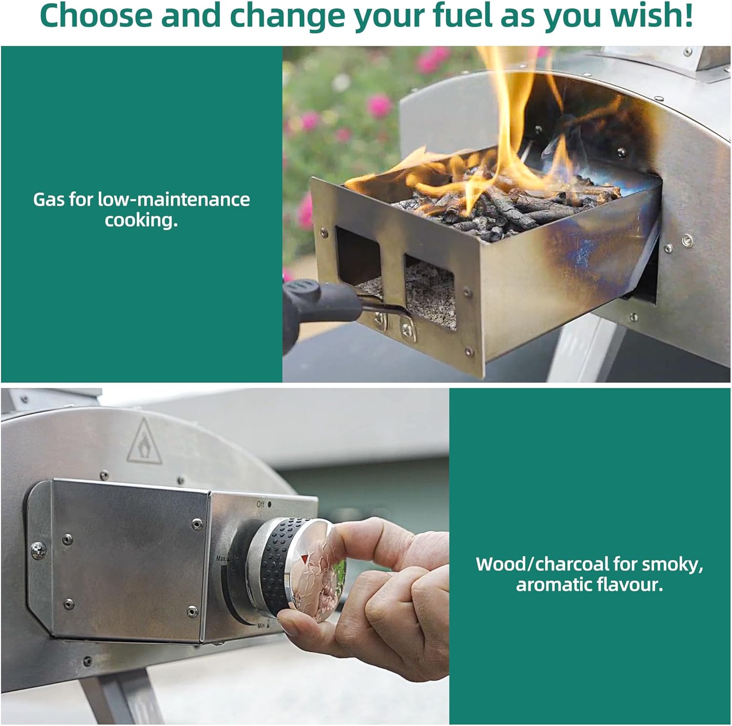 - Versatile Cooking Experience: The YITAHOME Multi-Fuel Outdoor Pizza Oven offers dual-fuel capabilities, allowing you to cook with both wood and gas, providing flexibility and convenience for creating delicious pizzas in your backyard or campsite.