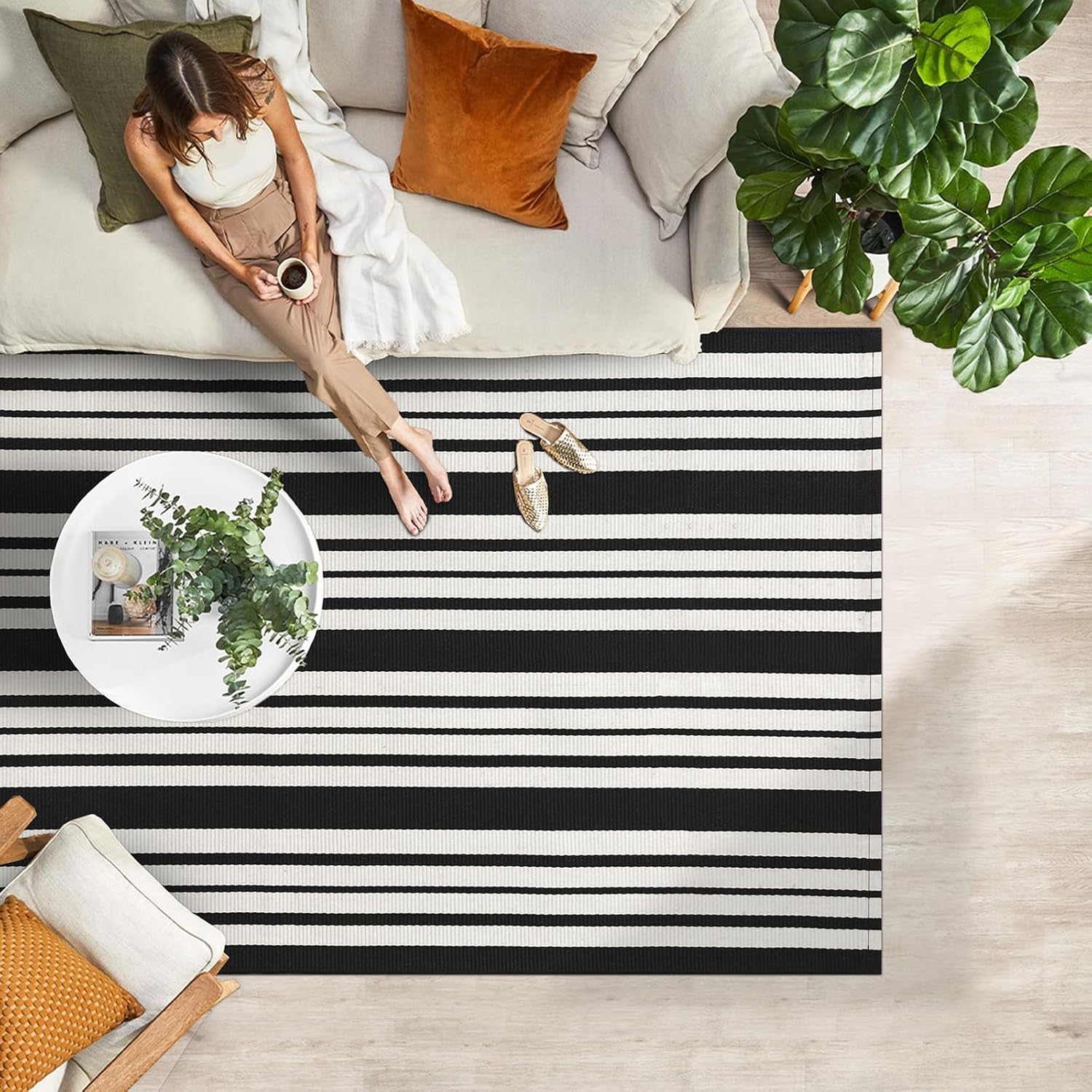 - Easy to Clean: This black and white striped rug is simple to maintain with machine wash or vacuuming to remove dirt. The rug is sturdy and can be tumble dried on low. Keep your door rug fresh and clean with minimal effort. NOTE: Cotton rugs normally shrink slightly after washing