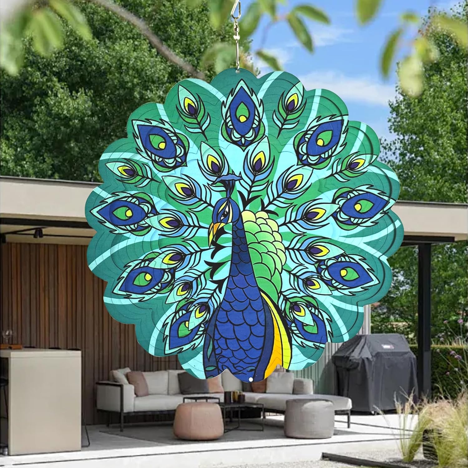 - Superior Craftsmanship:Crafted from stainless steel, this wind spinner is designed for durability and longevity. The peacock pattern is laser-cut with precision and coated with a UV-resistant, anti-fade finish, ensuring that the vivid colors remain bold and beautiful, even in challenging weather conditions.