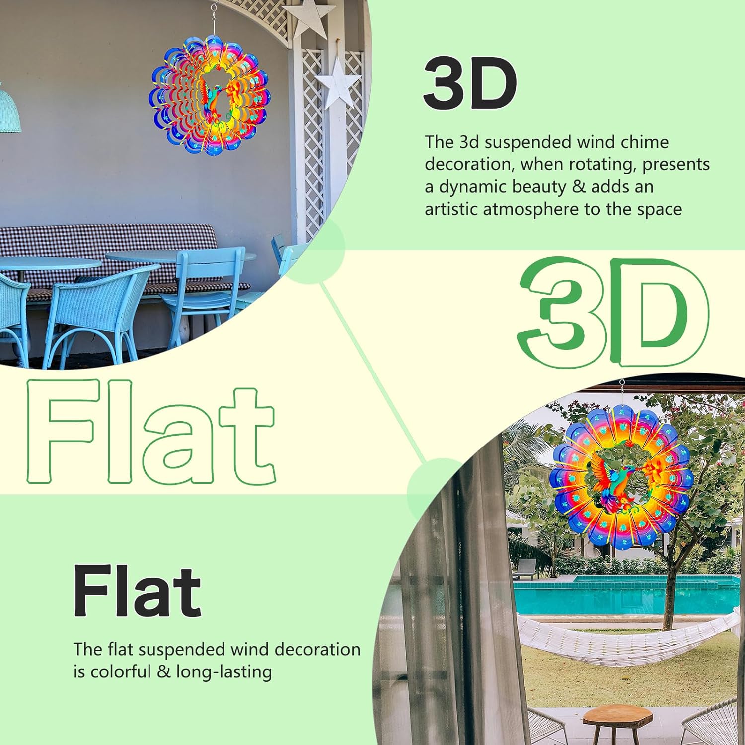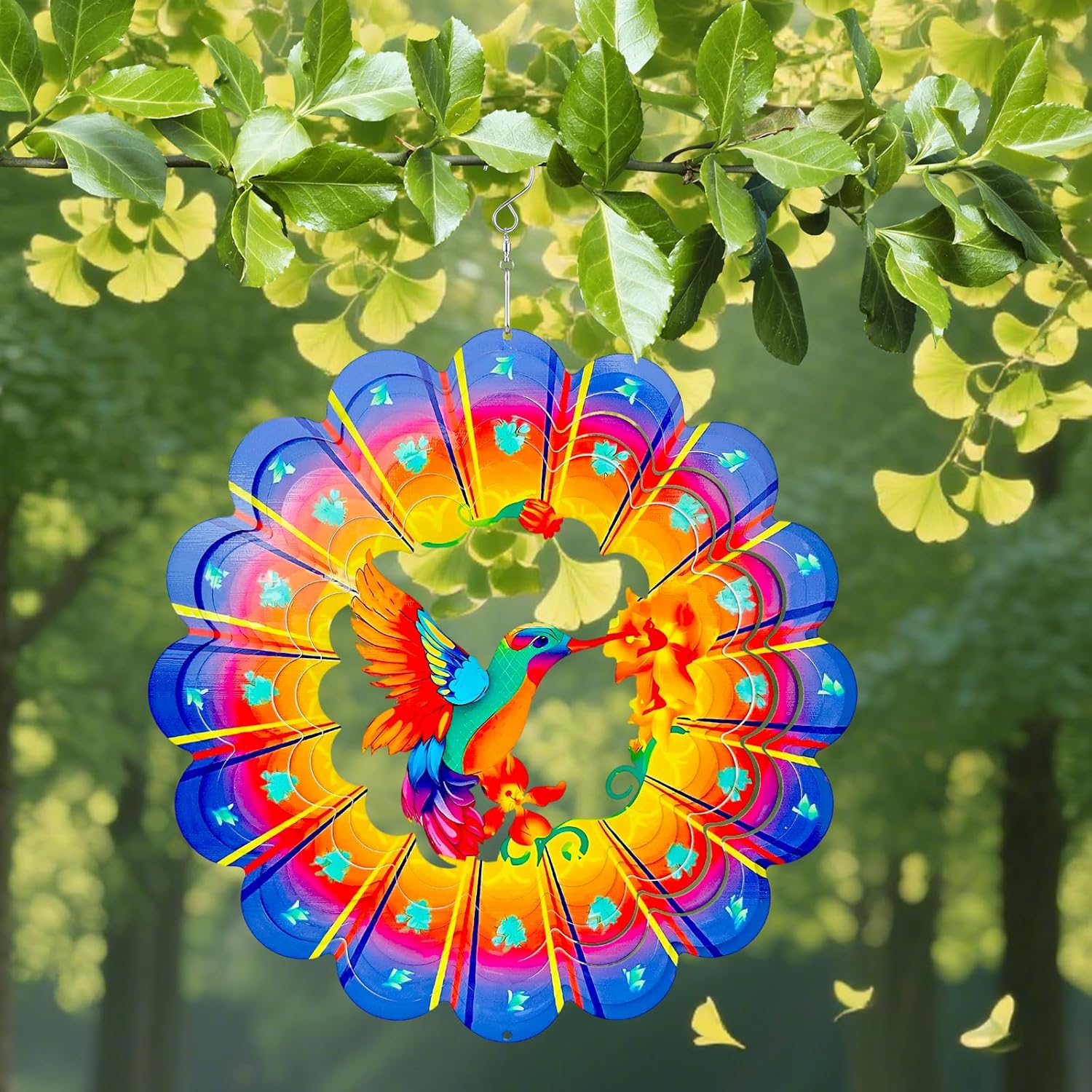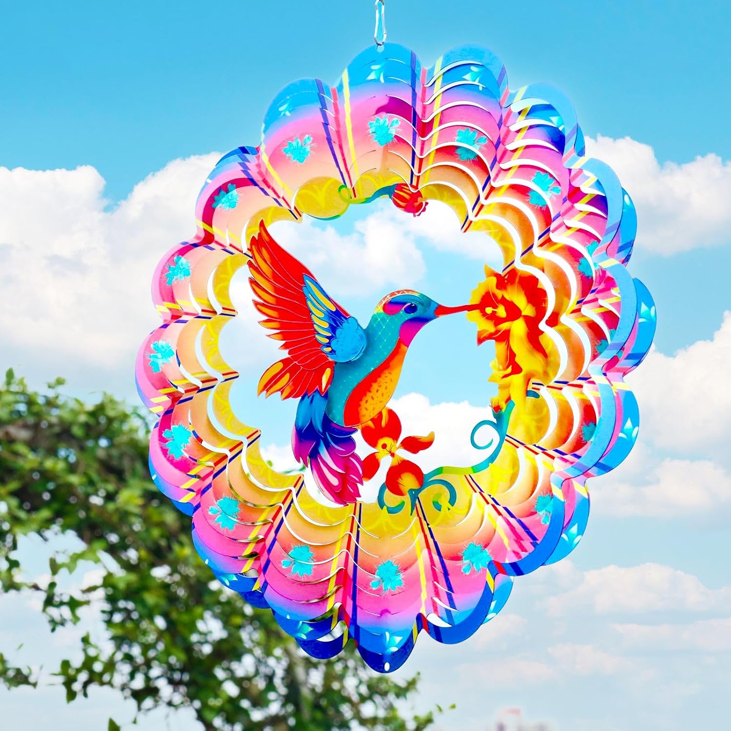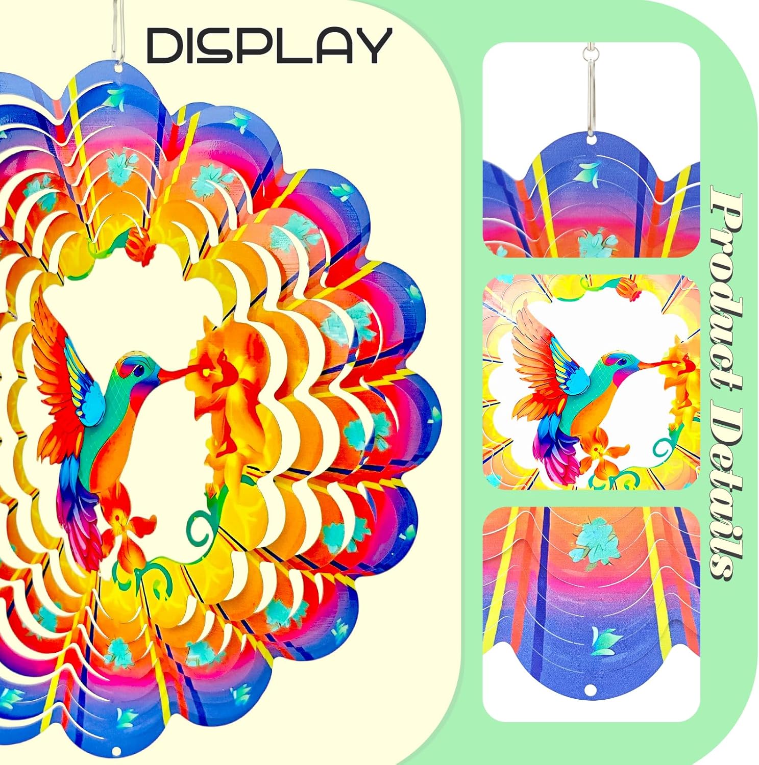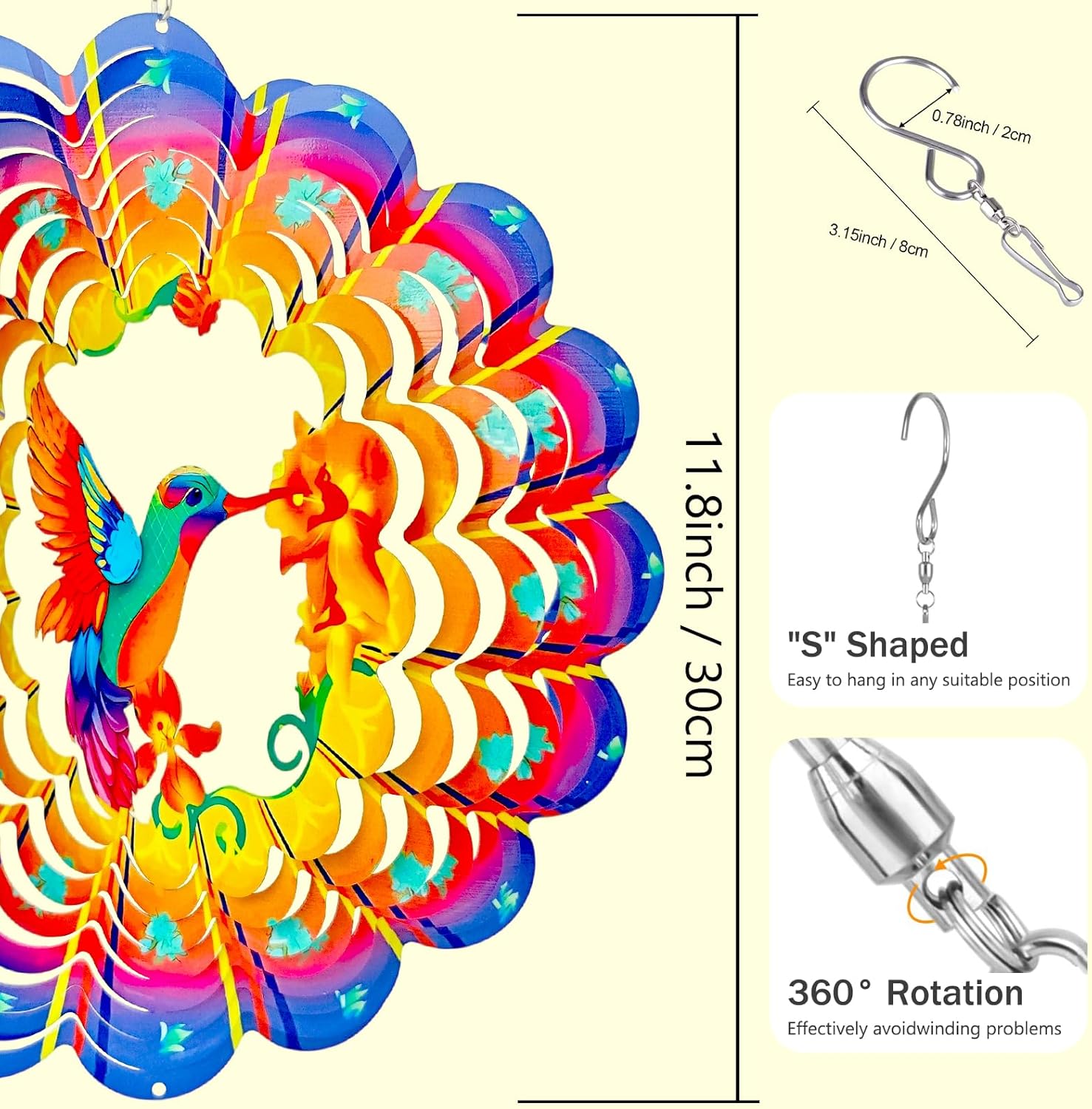 Wind Spinners Outdoor Hummingbird Art12 inch 3D Stainless Steel Laser Cut Metal Art Geometric Pattern Wind Sculpture Hanging for Yard Garden Decorations Gifts Outdoor