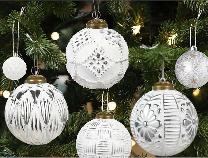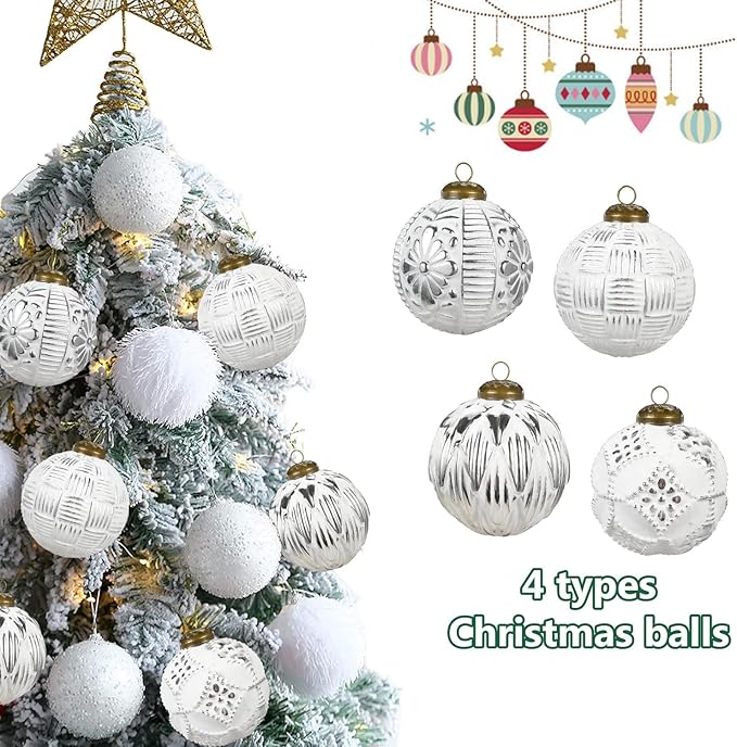 Christmas Ball Ornaments Set, 12ct 80mm Elegant White and Silver Assorted Xmas Tree Ball Ornaments, Shatterproof Christmas Tree Hanging Ornaments for Xmas Decoration