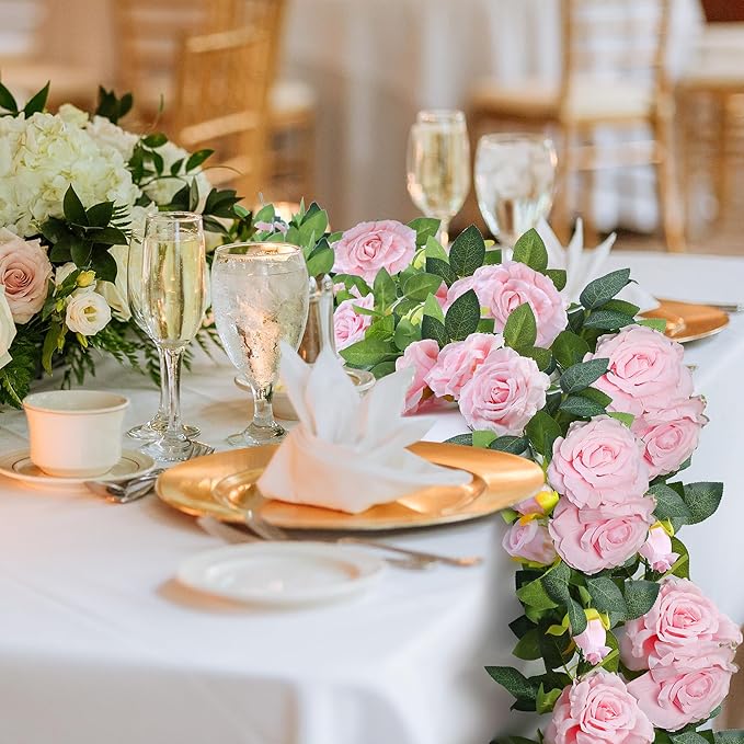 - [NOTES]: These pink flower garland are manually processed and installed. Due to long-term transportation, a few leaves may drop, you can re-splice it back. Please gently take out the rose vines from the box and carefully separate every pieces if they twine together.Our aim is to provide customer 100% satisfaction,please don't hesitate to contact us if you have any questions.