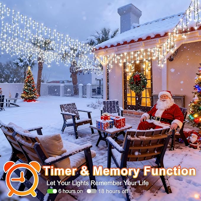 - Connectable, Timer and Memory Function: Each strand of string Lights can be connected end-to-end to cover a large area(Max 4 Sets), so you can connect multiple sets to achieve the perfect length what you want to decorate. Long press the button of the plug until the green lights on, timer function is setting 6 hours on and 18 hours off everyday. Built-in memory chip will save your last time setting. More convenient and energy-saving.