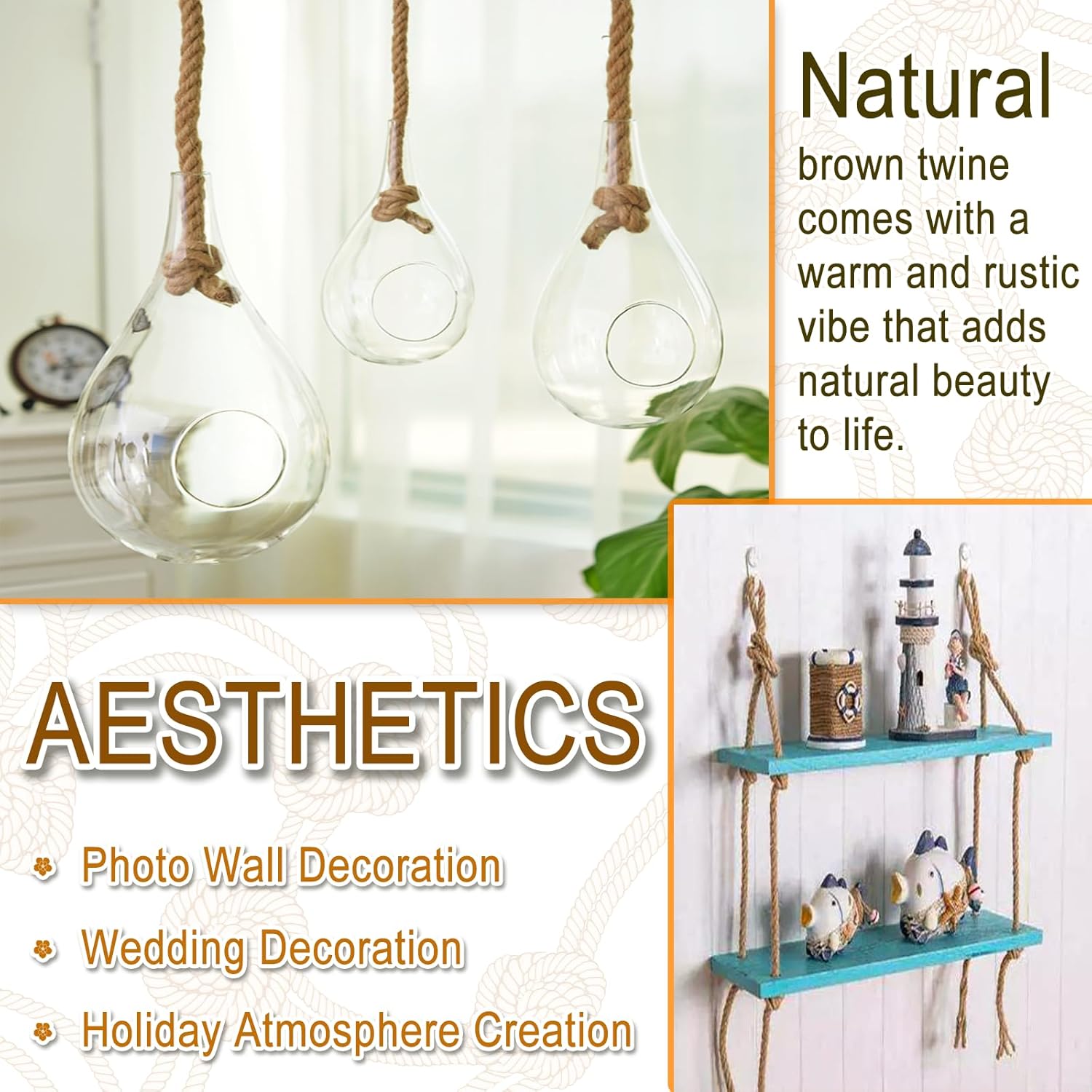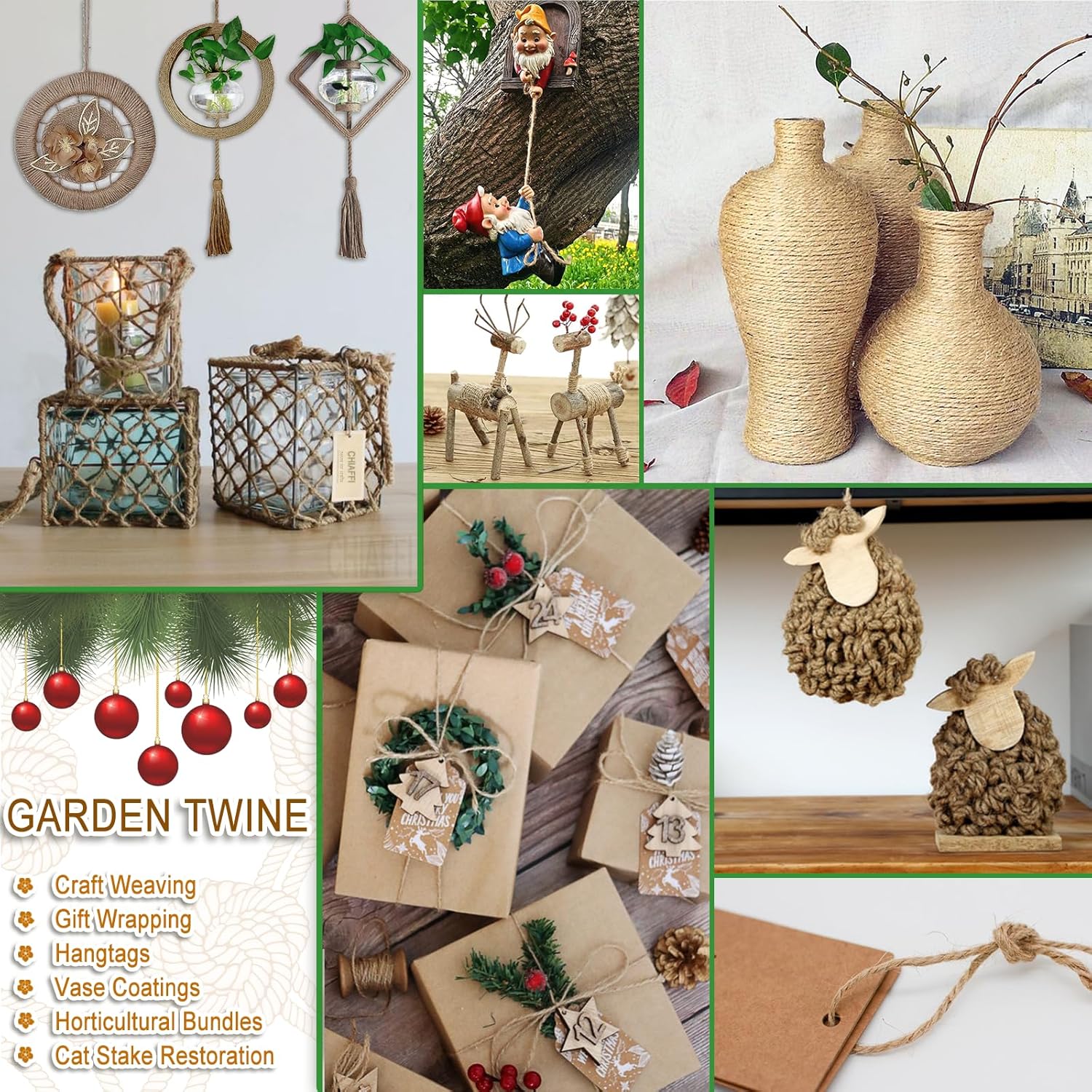 - AESTHETICS - The 6mm thick jute twine is often used for repairing cat scratching posts, making beautiful gift wrappings, gift card strings, photo strings, art crafts and DIY projects. It is suitable for weddings, birthdays, baby showers and more, creating a handmade rural style decoration. Natural jute twine is the perfect choice for packaging materials on Thanksgiving, Christmas and other holidays.