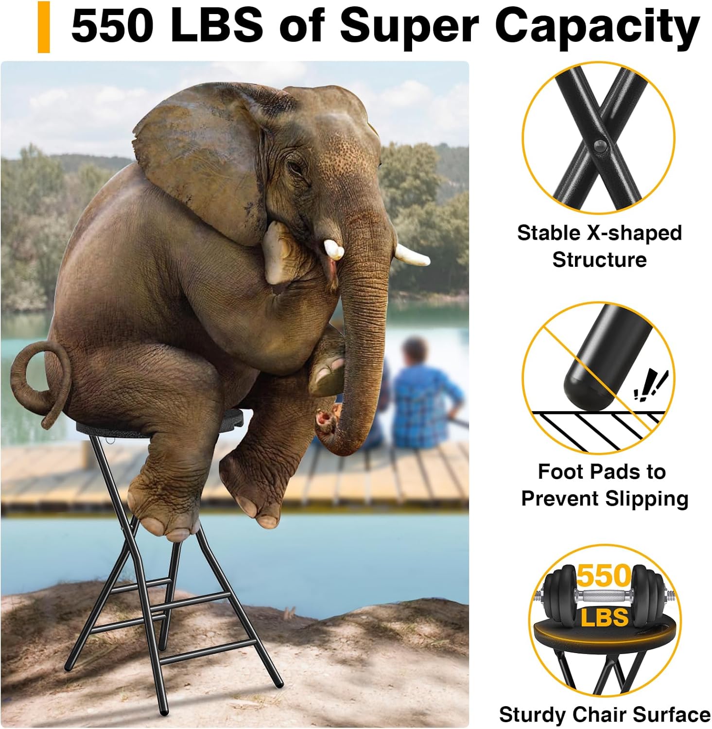 - Stable X Shaped Structure - The seat height of the portable stool is 24 inches, which is a comfortable seat height for most use cases. The legs with a stable X-shaped structure, so you don't have to worry about shaking during use. At the same time, folding stool chair has an integrated foot rest, it will not leave your feet nowhere to rest, you can put your feet on the top for greater comfort.