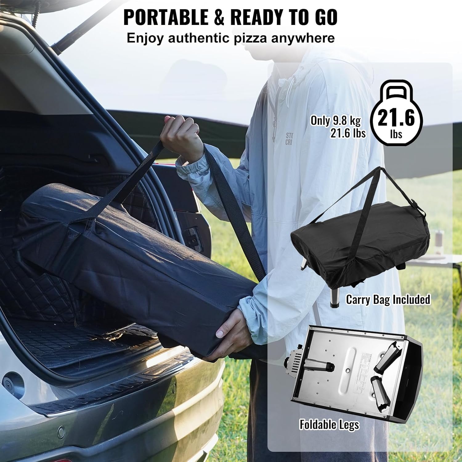 - Compact and Portable: Featuring a foldable leg design, our portable pizza oven is lightweight and perfect for outdoor use. Easily transport and set up wherever you go, making it ideal for camping, picnics, and other outdoor adventures