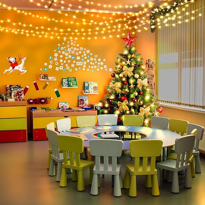 - Safer and Brighter: Upgraded higher brightness string lights are enough to cover the entire yard but non-dazzling. UL Listed Plug, 29V low output and Low-temp LED bulbs ensures safe to touch even after long time use. Very safety for kids and pets. Our Christmas lights is the most classic style, lighting along the eave, deck, balcony, stairs, fence, creates a charming atmosphere.