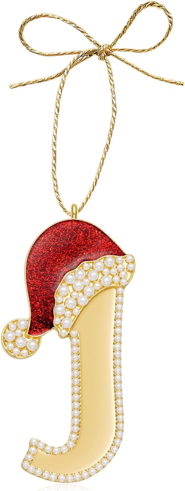2025 Christmas Ornaments, Letter J Ornaments for Xmas Tree|Hanging Christmas Red Hat Ornament for Mother Best Friends Sister Wife|J-Letter Ornament