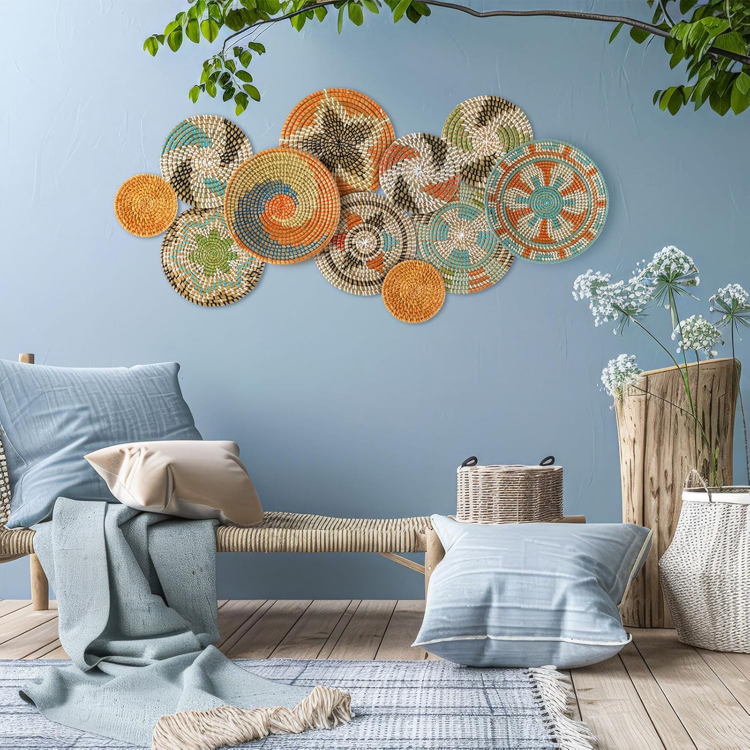 - Wide Range of Applications: boho basket wall decor set as placemats, or as decorative baskets to store toys and accessories, the rustic basket wall art is suitable for many occasions, such as hotels, restaurants, living rooms, bedrooms, schools, stores, offices, dorms, shops, Christmas and more, bringing you an elegant and classic feeling