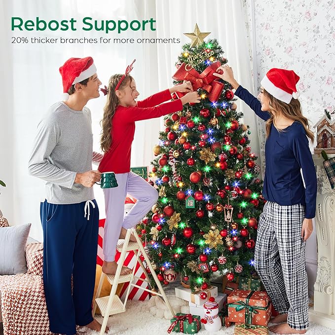 - 【Easy to Setup & Store】Our tree features a high-quality hinge structure. This design simplifies assembly, allowing to effortlessly set up and take down the Xmas tree each year. The hinges are constructed from strong, resilient materials that can withstand repeated use. This ensures that the tree maintains its shape and structural integrity, avoiding the sagging or misalignment that can occur with lower-quality trees.