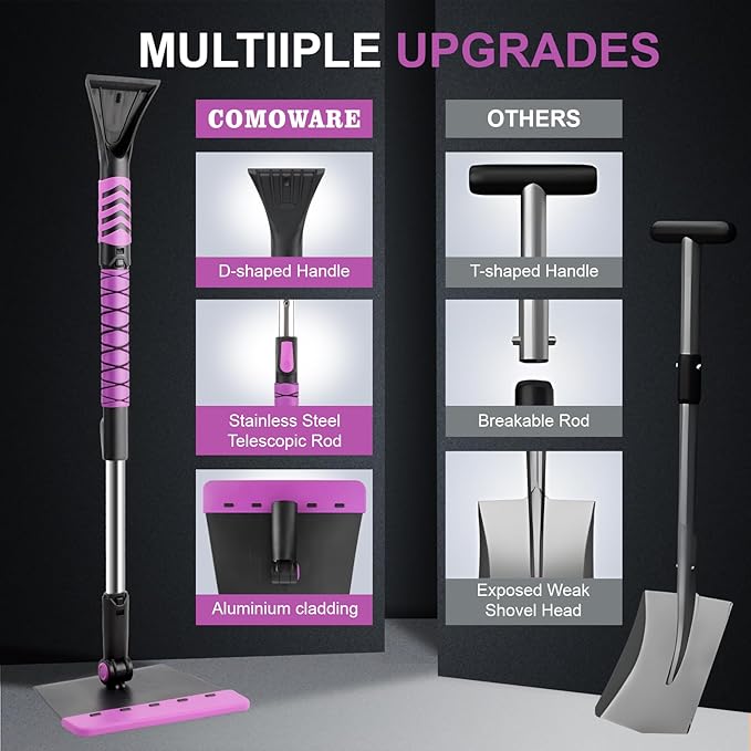 COMOWARE Snow Brush, Extendable Ice Scrapers for Car Windshield with 270° Pivoting Head, Lightweight Aluminum Body Snow Removal Tool with Ergonomic Foam Grip, Snow Scraper for Car Truck SUV