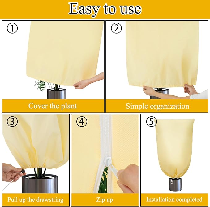 - Drawstring and Zipper Design: The plant winter protector is designed with side zippers and drawstring, the drawstring on the bottom edge can better help plants keep warm in winter. The side zippers make it easy to water and check in the winter, easy to put on and take off.