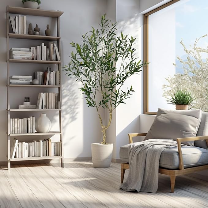 Artificial Tree Faux Olive Tree 6ft(71in,1289leaves) Tall Fake Olive Plant in Pot Fake Silk Tree Faux Plants Indoor