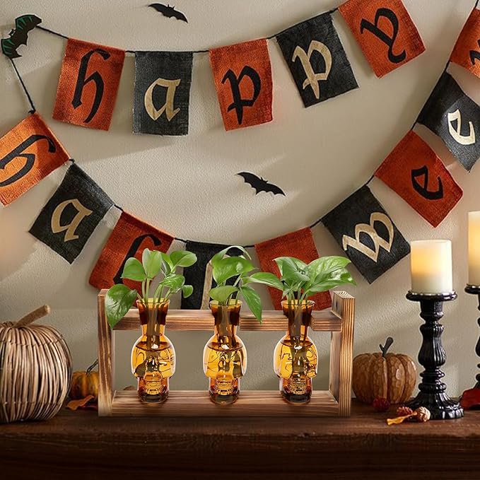 Plant Terrarium Propagation Stations Hydroponics Halloween Skull Planter Vase Skulls Decor with Wooden Stand Gift for Father