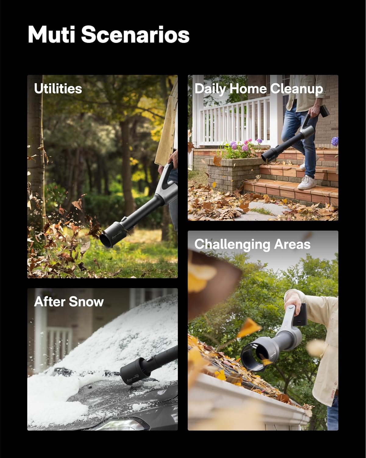 - ONE HANDED OPERATION: At just 2.93 lbs (battery excluded) with precision weight balancing, this blower delivers effortless single-hand control. It easily manages hard-to-access areas like roofs and gutters, even when climbing is required