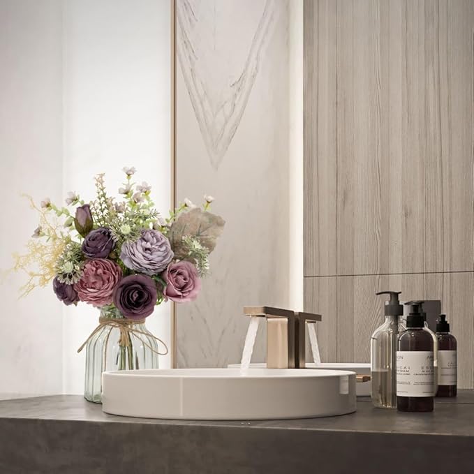 - Widely Aplication:Faux flowers decor with vase suitable for home decor, table, office, room, bathroom, kitchen, dining room and centerpieces for tables. Great ideal for wedding decorations, such as wedding table, wedding bouquets for bride, bridesmaid's bouquets or other indoor outside decorations.