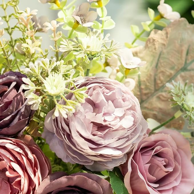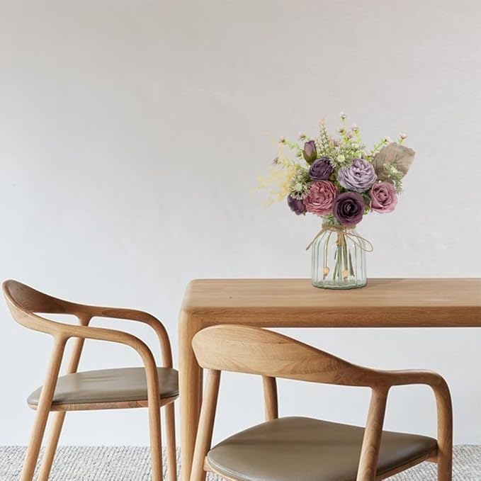 - Easy and Convenient to Decor: artificial flower bouquet has been matched by designers, the flower arrangements have been fixed with a string,you will get a bouquet in vase with a beautiful design .faux silk flowers are realistic and vibrant, easy care and last beauty.