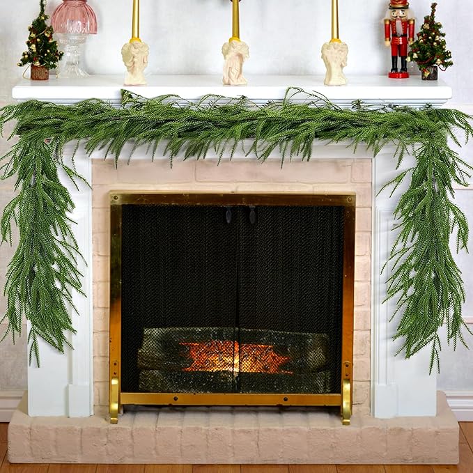 - WIDE APPLICATION: These norfolk pine cedar garland artificial realistic can match any christmas theme decorations, or used as everyday decorations, such as: front door, porch, window, living room wall, fireplace, cabinets, centerpiece party, wedding, holiday and festival celebration, It brings a vibrant and pleasant atmosphere all year round.