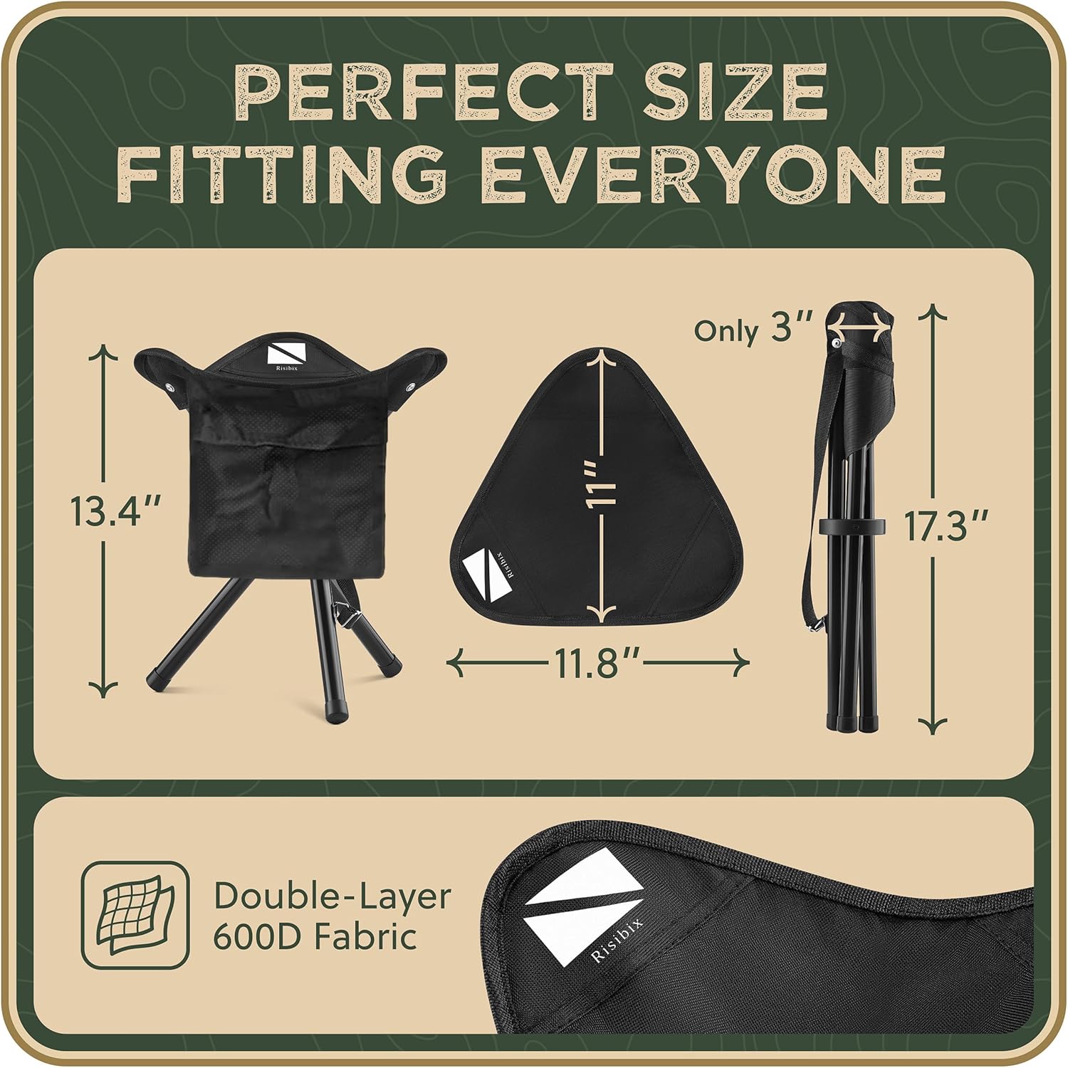 - β COMPACT CONVENIENCE: This petite tripod seat unfolds to a comfortable height ideal for quick rests during hikes. The 3 legged stool small stature ensures easy transport with comfort. Camping stools can fit seamlessly into your outdoor adventures