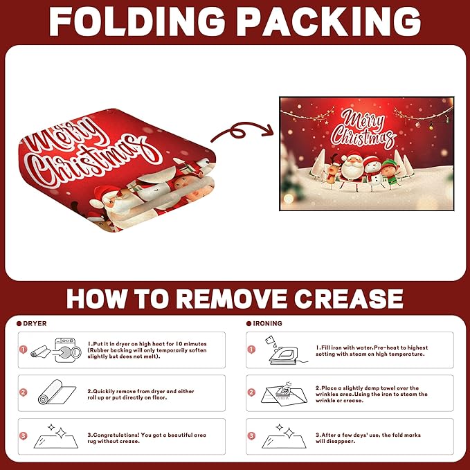 - [ANTI-SLIP BOTTOM]: Small anti-slip grip dots at the bottom of the Merry Christmas Rug, which helps prevent it from sliding on your floor. Non-slip, non-fading, non-shedding, water-absorbing, durable.