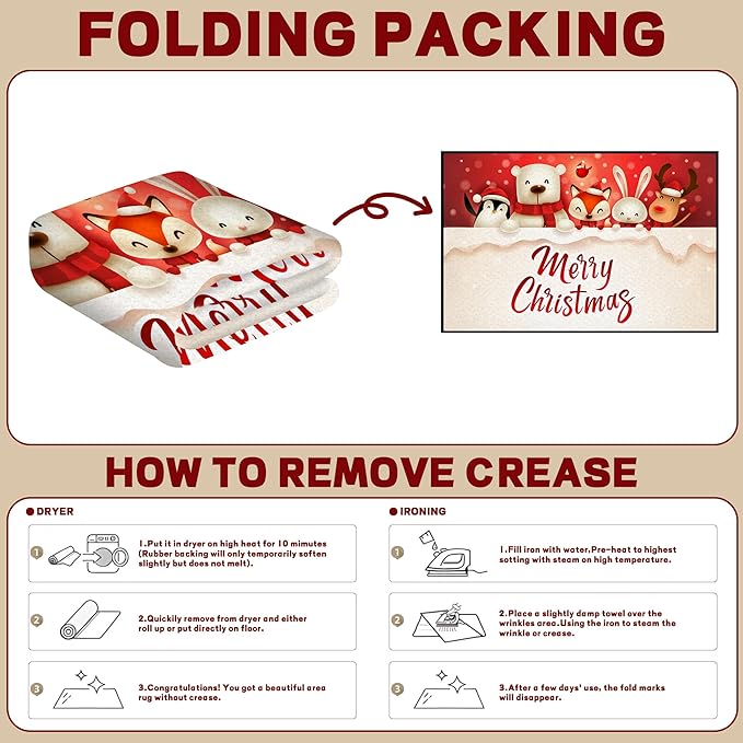 - [ANTI-SLIP BOTTOM]: Small anti-slip grip dots at the bottom of the Merry Christmas Rug, which helps prevent it from sliding on your floor. Non-slip, non-fading, non-shedding, water-absorbing, durable.