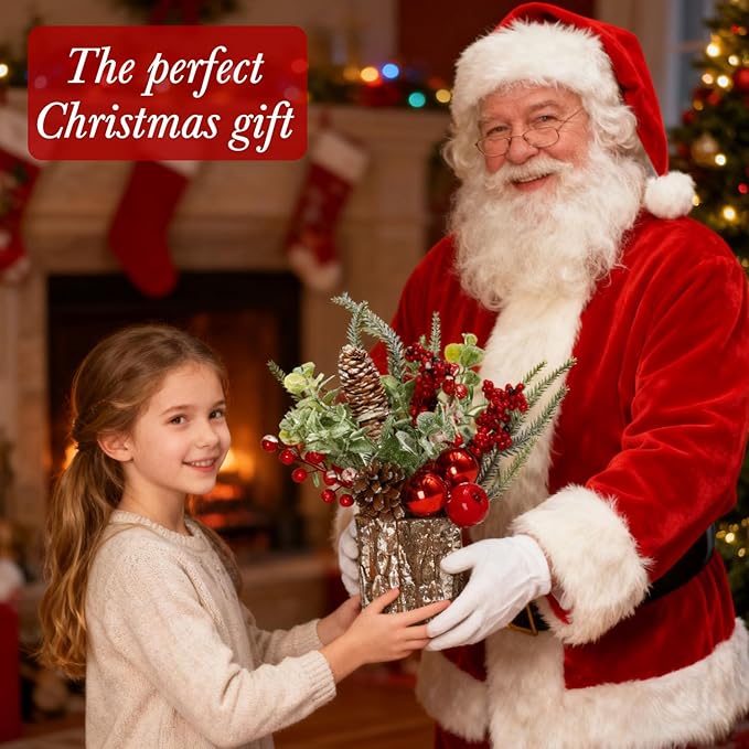- Unique Design -- This small tabletop Christmas tree decoration with artificial pine needles, pine cones, red berries, simulated tree stump base, and more classic Christmas elements. The exquisite design makes these mini Christmas trees become perfect Christmas centerpieces for indoor or outdoor.