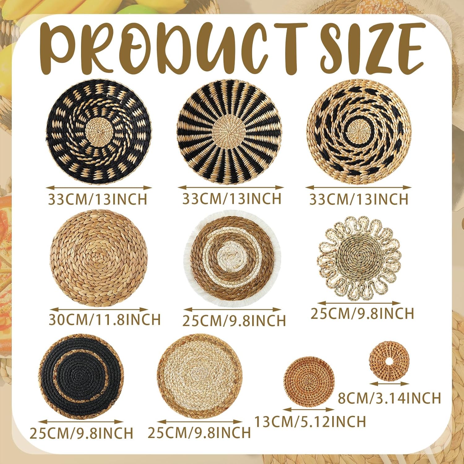 - Wide Applications: boho basket wall decor set as placemats, or as decorative baskets to store toys and accessories, the rustic basket wall art is suitable for many occasions, such as hotels, restaurants, living rooms, bedrooms, schools, stores, offices, dorms, shops,Christmas and more, they bring a comfortable, farmhouse feel to your space, bringing you an elegant and classic feeling