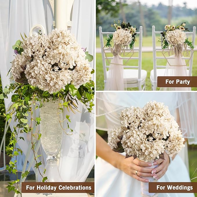- ❤️MADE WITH HEART: The artificial hydrangea petals and leaves are made from 3D printing, bright, beautiful and lifelike, everyone can't help but be amazed, the flower clusters are huge and bushy, the vintage colours look antique and have a unique flavor.