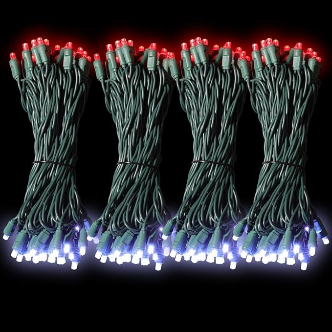 LAMPHOME 50L String Lights, LED Christmas Lights, 6" SPACING,Green Wire, Red and White