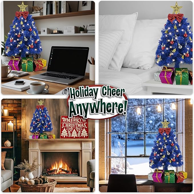 - TRANSFORM YOUR SPACE: Brighten up your home or workspace with this unique blue 23-inch mini tabletop tree, complete with lights and beautiful ornaments, for the most spectacular Christmas decor!