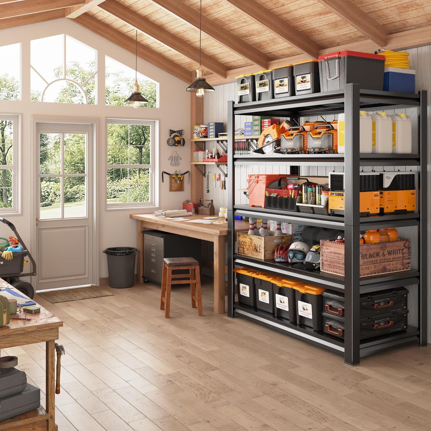 REIBII Garage Shelving, 3000 LBS Garage Shelves, Adjustable Metal Storage Shelves, 5 Tier Heavy Duty Shelving Units for Garage, Basement, Warehouse, Kitchen, Pantry, 72" H x 36" W x 16" D