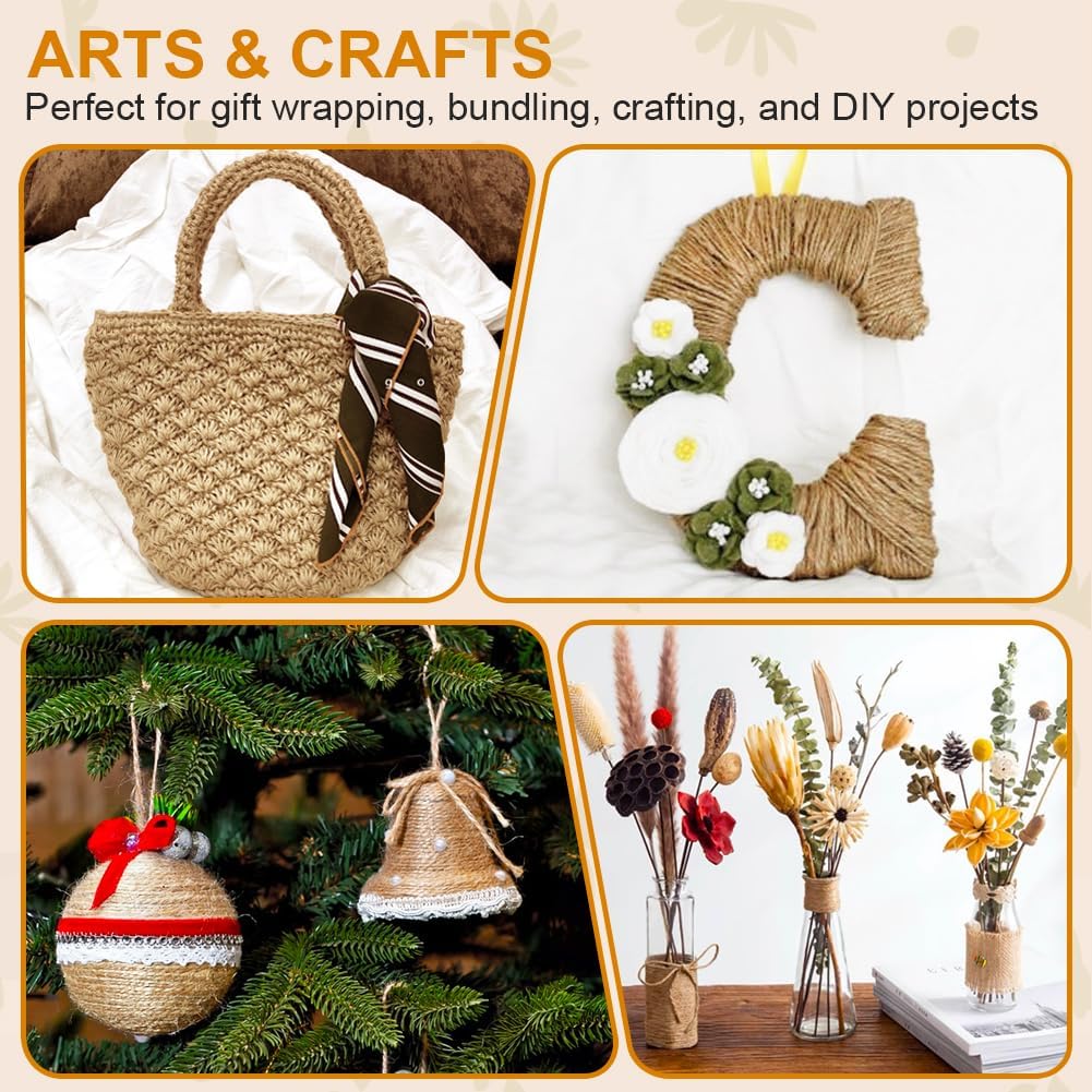 - WIDE APPLICATION - Perfect for gardening tasks like tying plants, vines, and trellises, this jute twine also excels in gift wrapping, crafting, bundling, home DIY projects, holiday decorations, offering endless creative possibilities