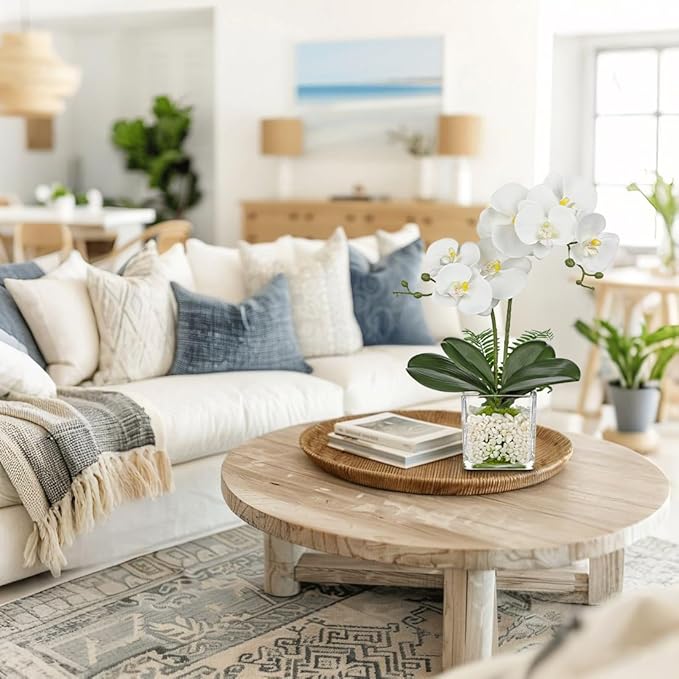 - Maintenance-Free Orchid Plants - No watering, pruning, or special care required, this artificial flower arrangement can keep long lasting beauty and fresh as it never die or fade, the acrylic faux water stays perpetually clear—no spills or refills needed. A quick wipe with a damp cloth restores its original shine.Ideal for busy households or commercial spaces seeking fuss-free sophistication, let your artificial orchids fresh forever, enjoy the natural beauty and add a splash of vibrant