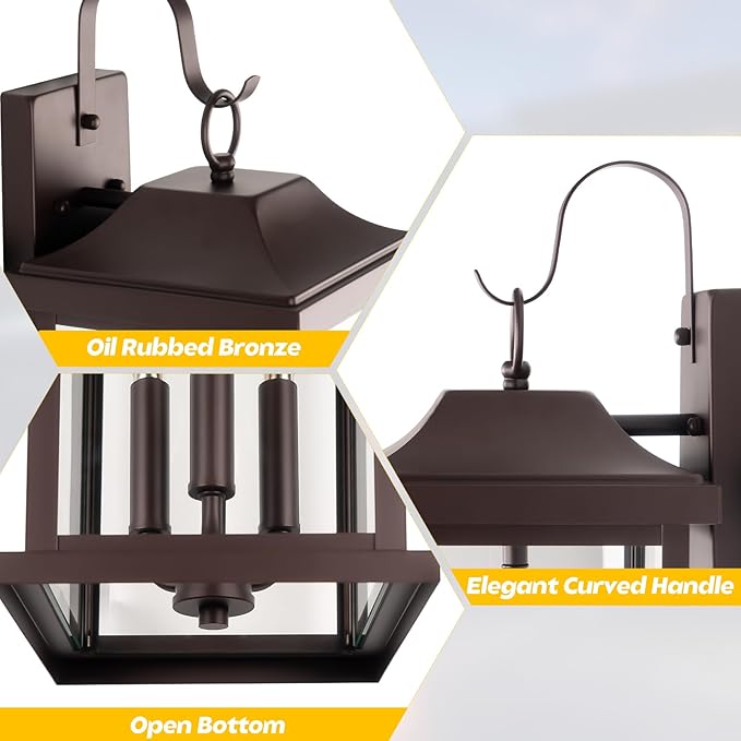 - ใ๐๐๐ง๐๐๐ฅ๐๐๐ซ๐ ๐-๐๐ข๐ ๐ก๐ญ ๐๐จ๐ซ๐๐ก ๐๐ข๐ ๐ก๐ญ๐ฌ ๐๐ซ๐จ๐ง๐ณ๐ใFeatured elegant yet sturdy lantern head, these brown outdoor sconces wall lighting extra large have alluring 3-light candle design for delivering ample illumination and distinctive lighting effect. Hard-wired electrical exterior lights candle for patio look like triple alluring flames, giving your home warmth and sense of vintage.