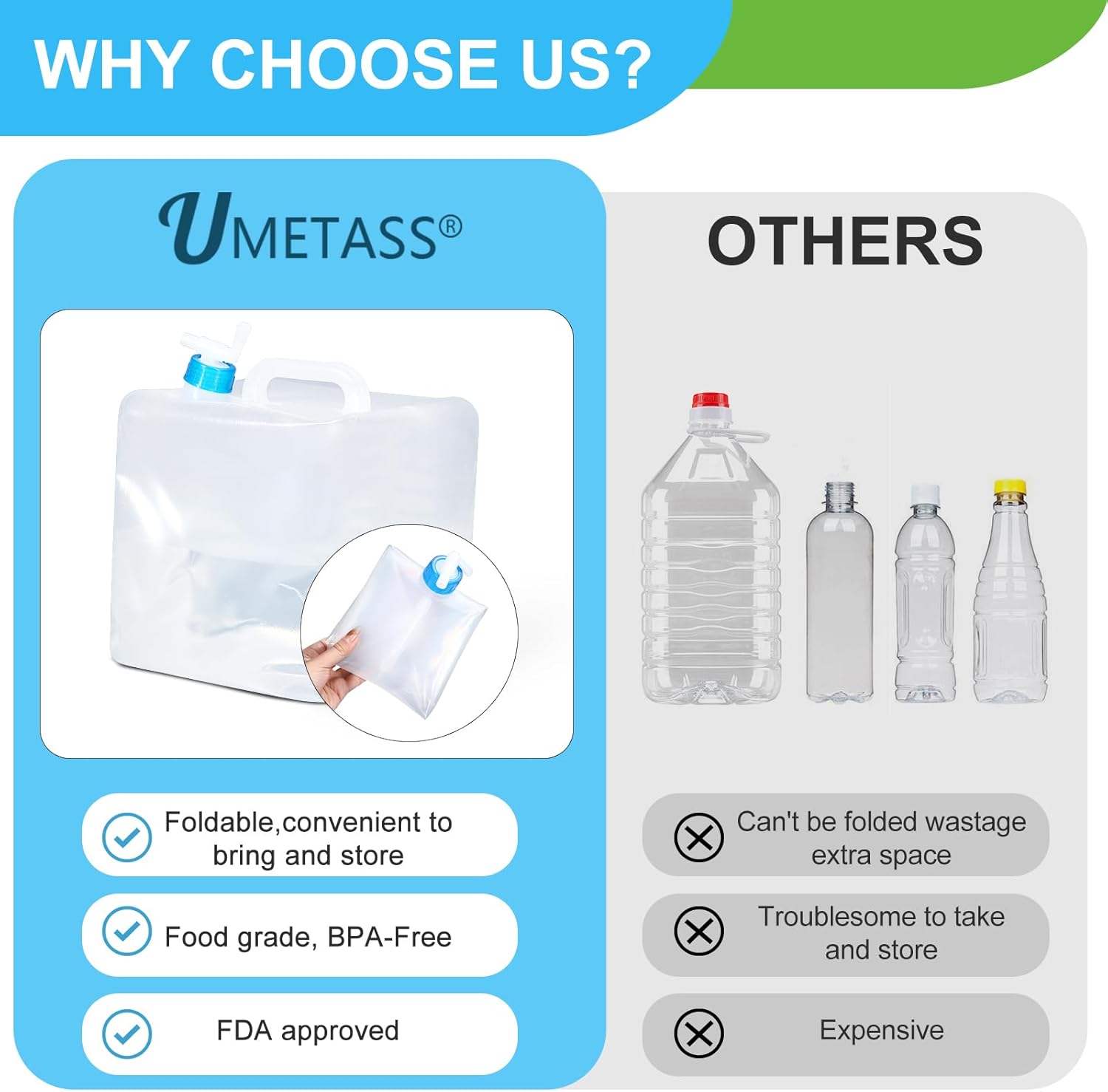 - Rest Assured Shopping:Thank you for choosing our products for your water storage needs. If you have any questions or concerns, please feel free to contact us. We’re committed to providing you with the best customer service and a perfect solution to your needs, whether you're looking for a collapsible water container or a 1.4 gallon water bottle