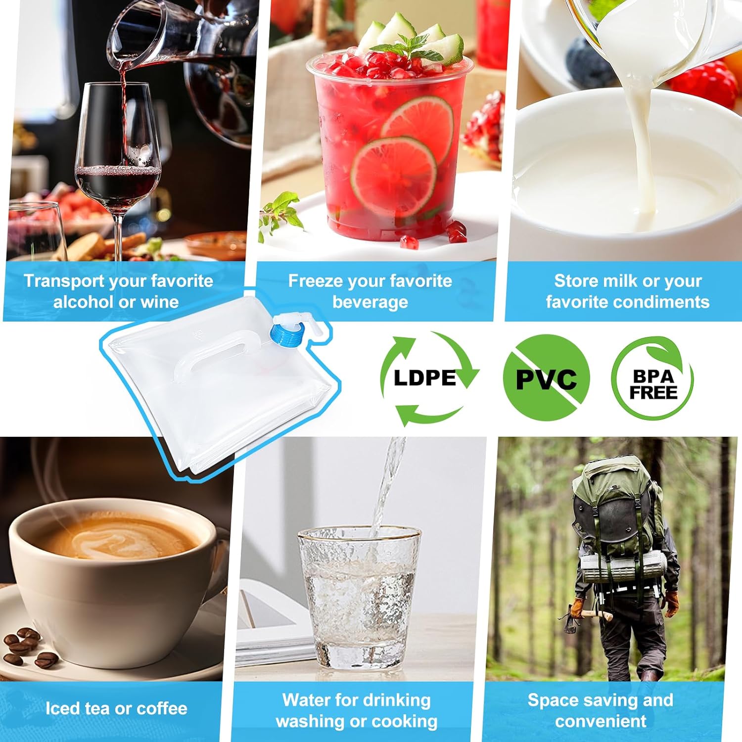 - Excellent Quality:The collapsible water container is made from LDPE material imported from Germany, ensuring it’s safe for water storage. It’s perfect for storing drinking water, as it contains no plastic smell and is both transparent and environmentally friendly. This durable material offers the highest quality, making it a great choice for long-term water storage needs, including in a 1.4 gallon water jug for larger quantities of water