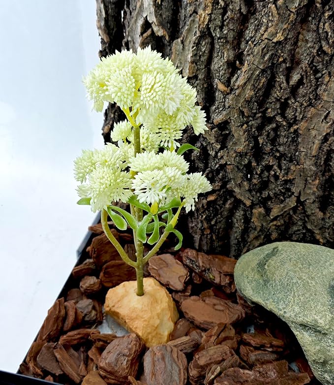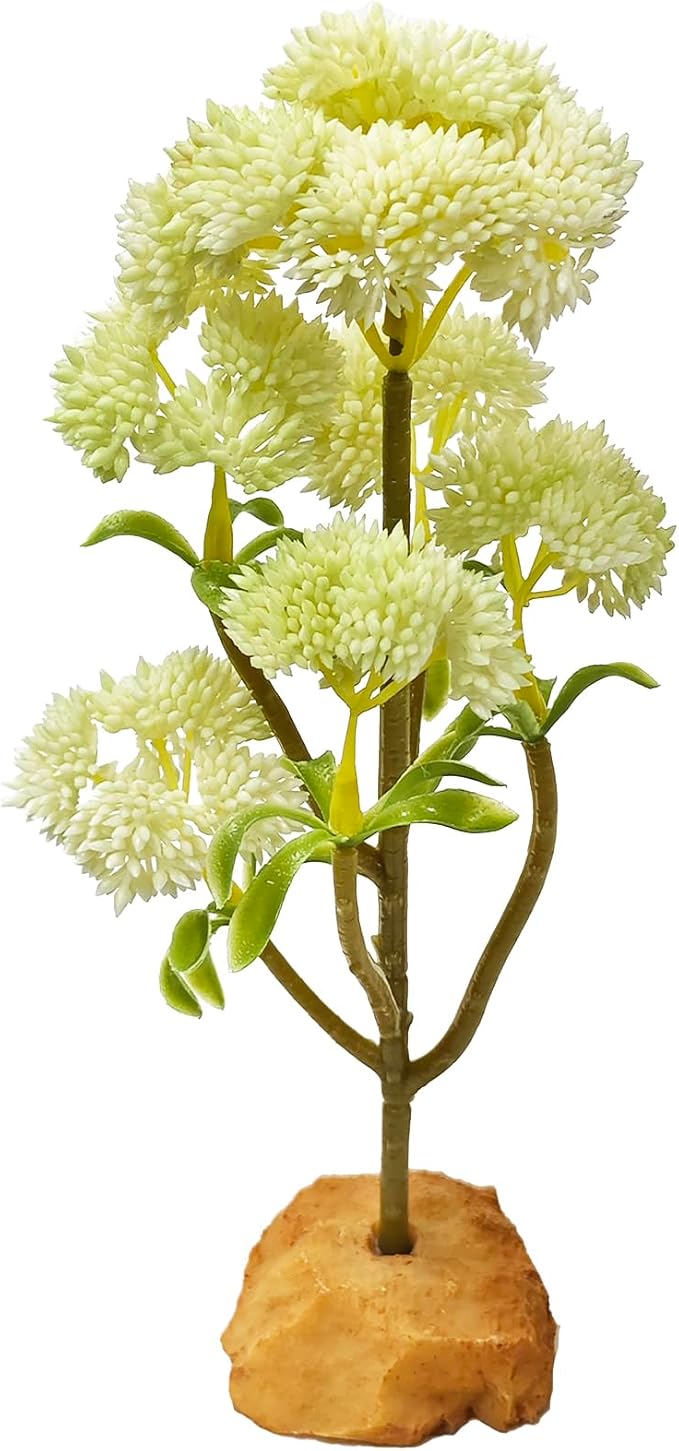 Woyrise Reptile Plants Succulent, Artificial Desert Plant for Terrarium Decor, Bearded Dragon Tank Accessories fit Gecko Lizard Chameleon Ball Python Snake - White Hylotelephium