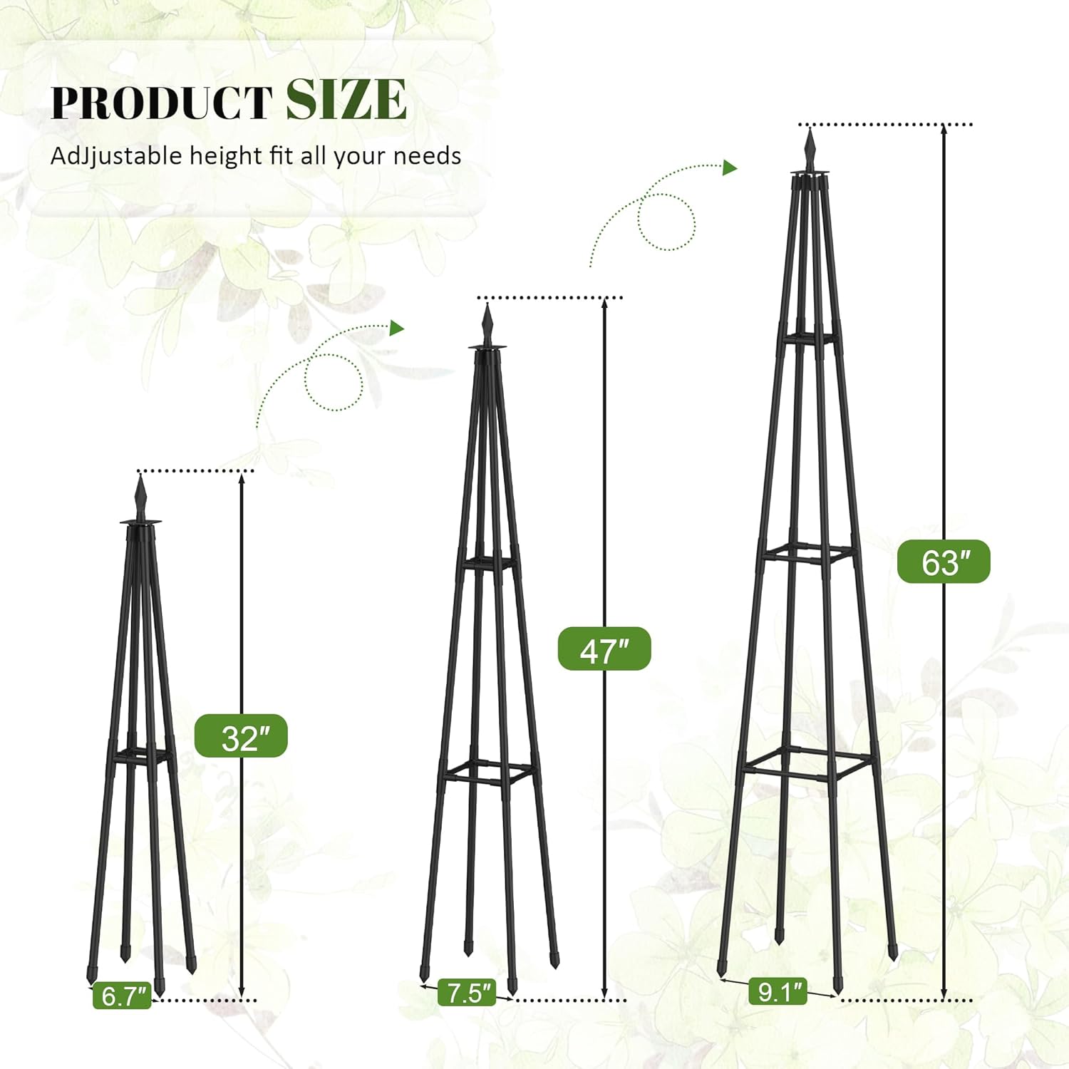 - Supports Heavy Climbers & Vining Plants :Obelisk trellis can handle the weight of vigorous climbers like roses, clematis, beans, or cucumbers, preventing plants from sprawling on the ground.