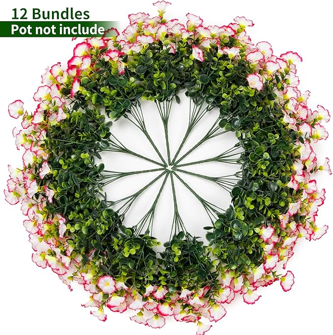 Lnoicy Artificial Flowers for Outdoor 12 Bundles Eucalyptus Fake Flowers for Planter,UV Resistant Fake Morning Glory for Home/Porch/Garden Decoration(Pink)