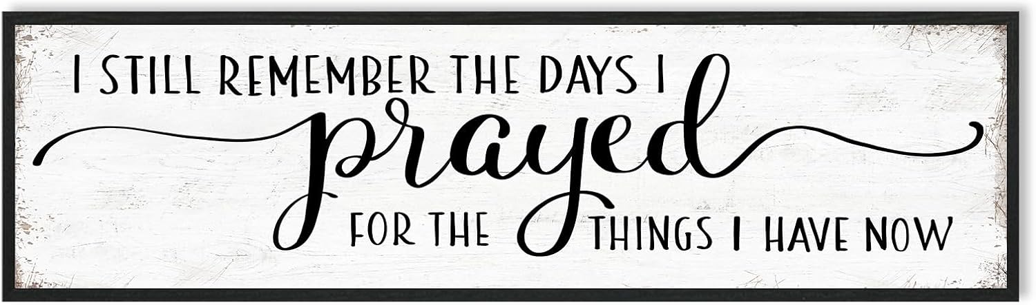 - Above Bed Wall Decor: Exquisite "I Still Remember the Days I Prayed for the Things I Have Now" quote print is crafted with high-quality, sound-absorbing materials, this farmhouse sign creates a serene atmosphere in your master bedroom, guest bedroom, or nursery. Elevate your home decor with this above bed wall decor and have a nice sleep throughout the night