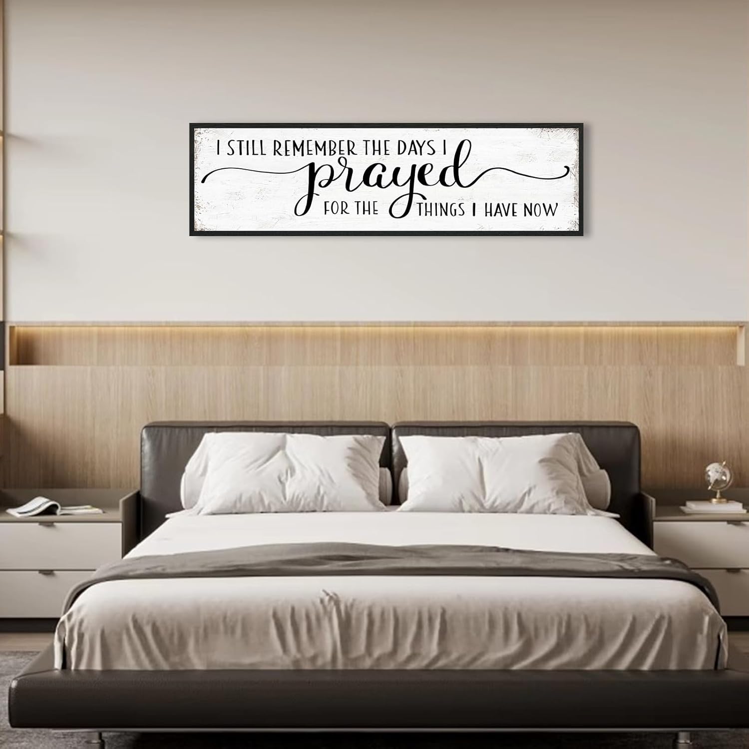 I Still Remember The Days I Prayed for What I Have Now Sign Wall Decor: Christian Wall Decor 16"x48" Large Farmhouse Signs Home Decor for Living Room Modern Master Bedroom Wall Art Above Bed Framed