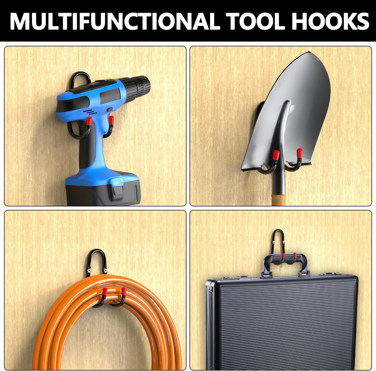 - Multi-use hose hanger wall mount: You will receive 2 extra large square hose reel wall mount,2 J-shaped hooks and 4 extension cord storage straps. This steel wall mount hose reel, ideal for organizing gardens, shops, sheds, yards, and garages, keeps various tools in order, thereby saving you more space. Our outdoor hose holder is suitable for hanging items such as cables, air hoses, ladders, chairs, brooms, shovels, and power tools