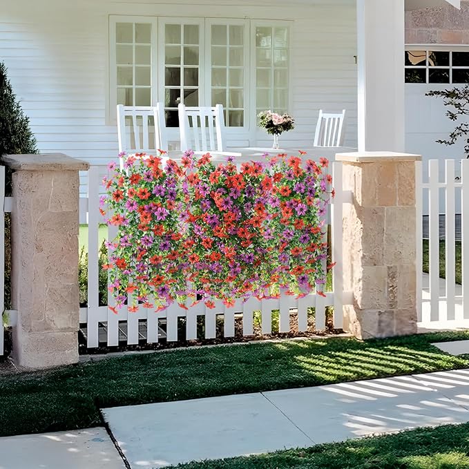 - Artificial Flowers for Outdoors: The UV resistant artificial outdoor plants are made of high quality silk cloth, which is UV and all weather resistant.Transform your home with the exquisite hanging flowers vines,natural beauty into everywhere
