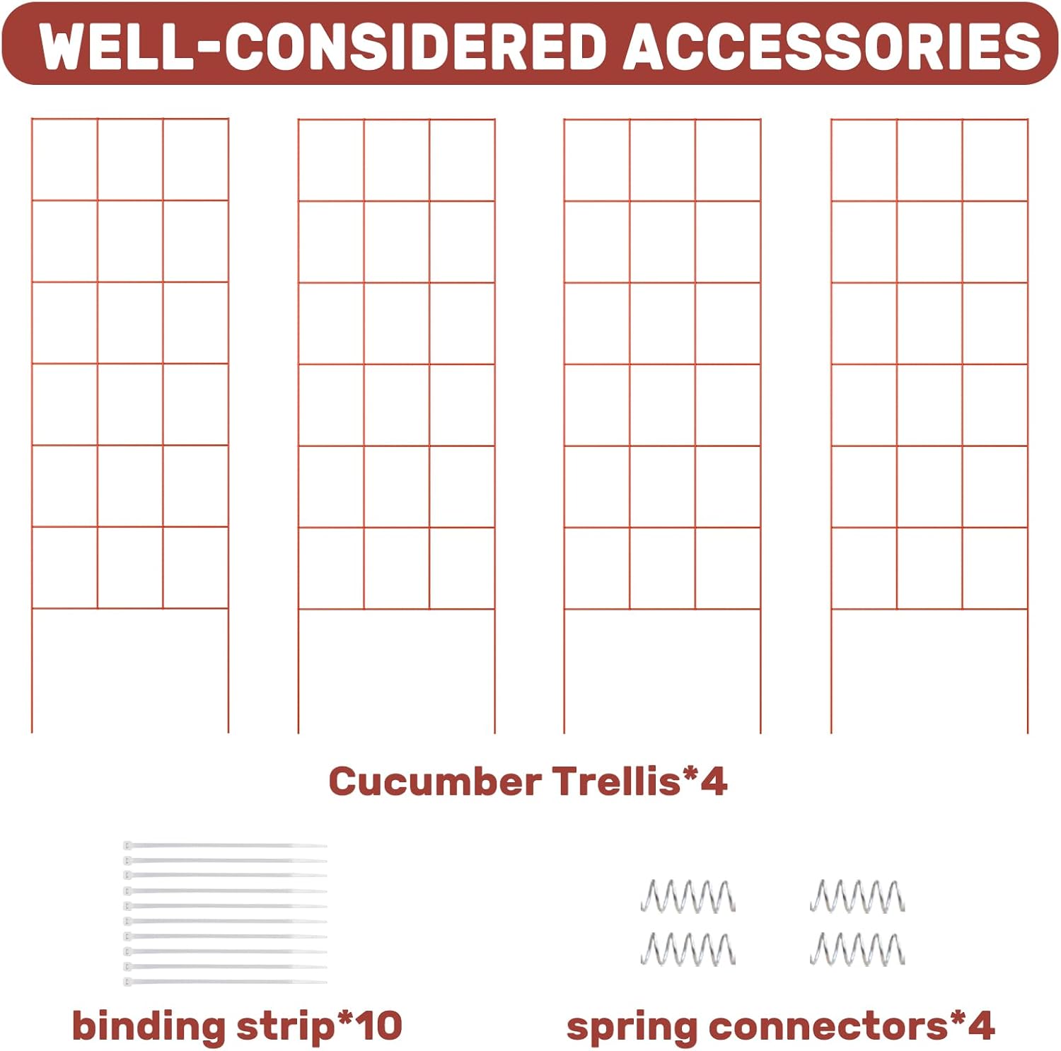 - Cucumber Trellis Material: Constructed with 4mm plastic-coated steel core, the garden trellis ensures reliable strength and long-lasting performance. The powder-coated steel frame is strong enough to support heavy loads and has big 6"*7.5" grid openings for easy harvesting