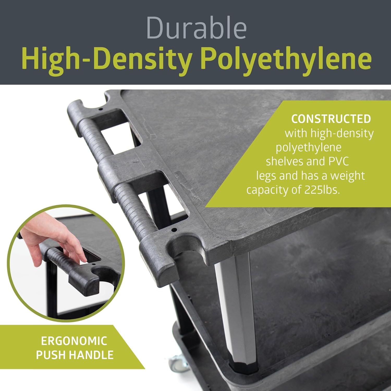 • DURABLE CONSTRUCTION: Made of heavy-duty, high-density polyethylene shelves and PVC legs with a maximum weight capacity of 225 lbs., ensuring lasting performance