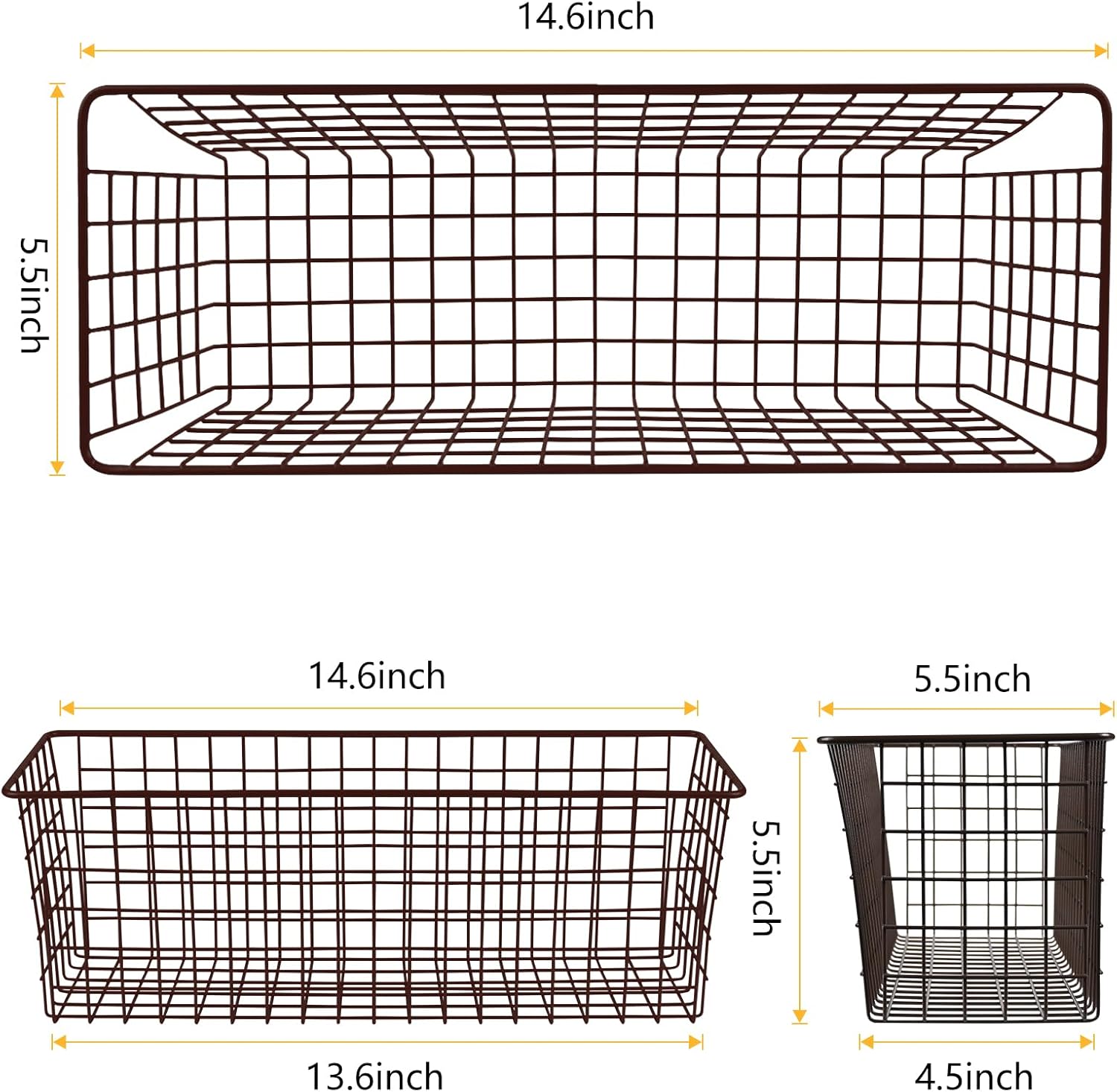 - Sturdy Metal Wire Baskets: These metal wall baskets are made of solid metal wire with anti-rust coating, sturdy and durable for long lasting. The wire baskets for organizing open design allows you to see the items inside the basket, which makes it easy to find the item you need. And easy to clean, just wipe clean with a soft damp cloth and dry towel.