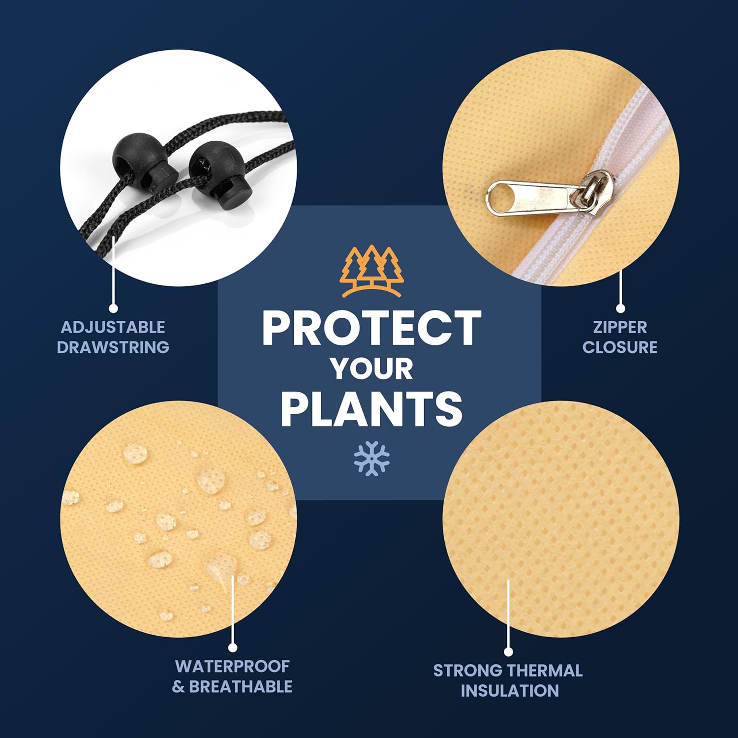 - Simple and Quick Installation: Simply use the zipper to close the frost cloth and tighten the drawstring and Bravo! You’ll have your plants and trees covered up and ready for the winter.
